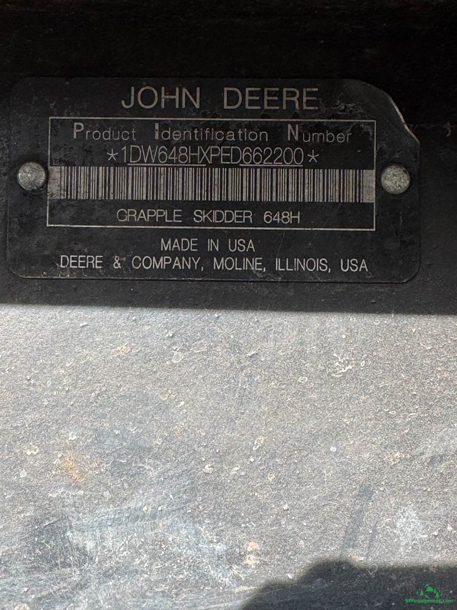 2014 John Deere 648H Grapple Skidder with Winch, 15,337 hours, Blade, 30.5L-32 Tires.