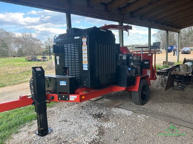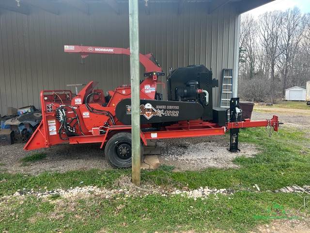 2022 Morbark Eager Beaver 1922 Chipper with 17 hours. Caterpillar c4.4 Tier 4F, 174-HP Diesel Engine. Equipped with over center clutch, dual horizontal feed wheels with TorqMax top feed wheel compression system, hydraulic lift assist, spring assisted down pressure and manually applied hydraulic down pressure at the valve handle, 23.5" wide 37.4" diameter drum with four (4) dual edged knife staggered pocket drum with removable knife holders. 19" high 21.3" wide throat opening, 36" high 59" wide infeed chute;
