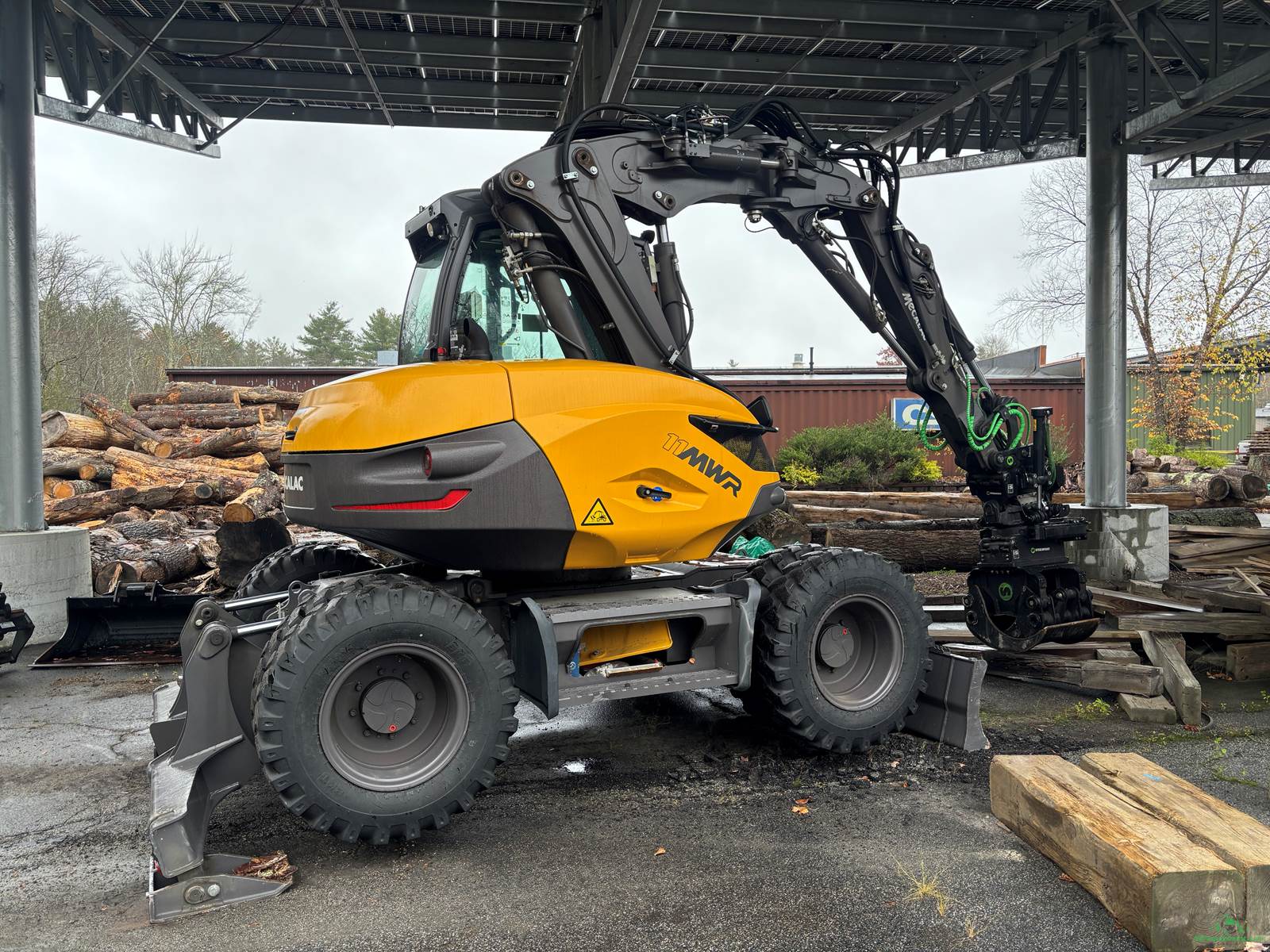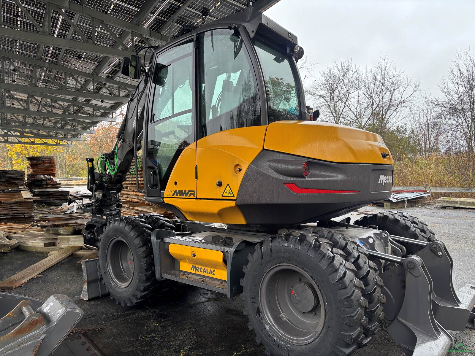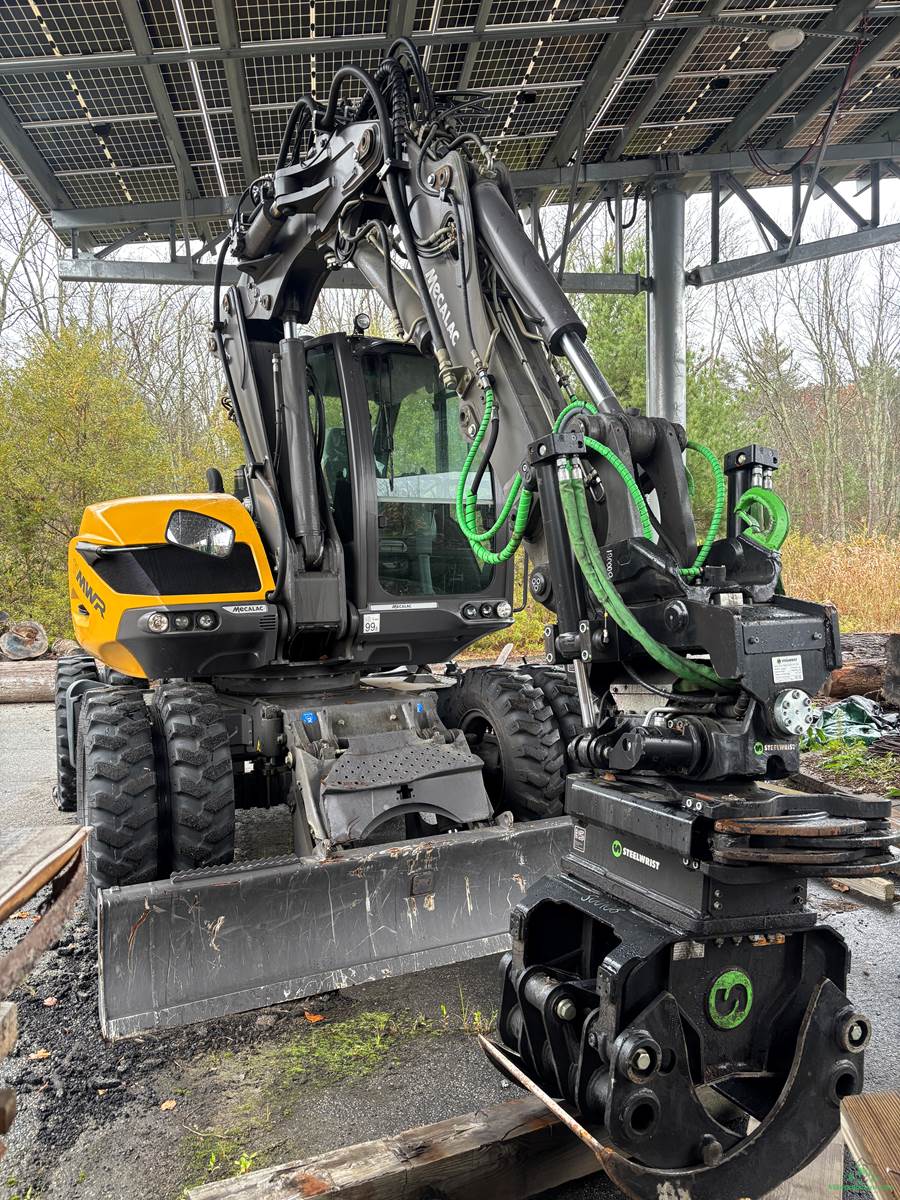 2023 Mecalac 11 MWR Excavator with 321 hours, Blade, Steel Wrist X12 Grapple, Steel Wrist SQ 50 HYD Pallet Fork, Steel Wrist GB06-550 Bucket, Mecalac Bucket.